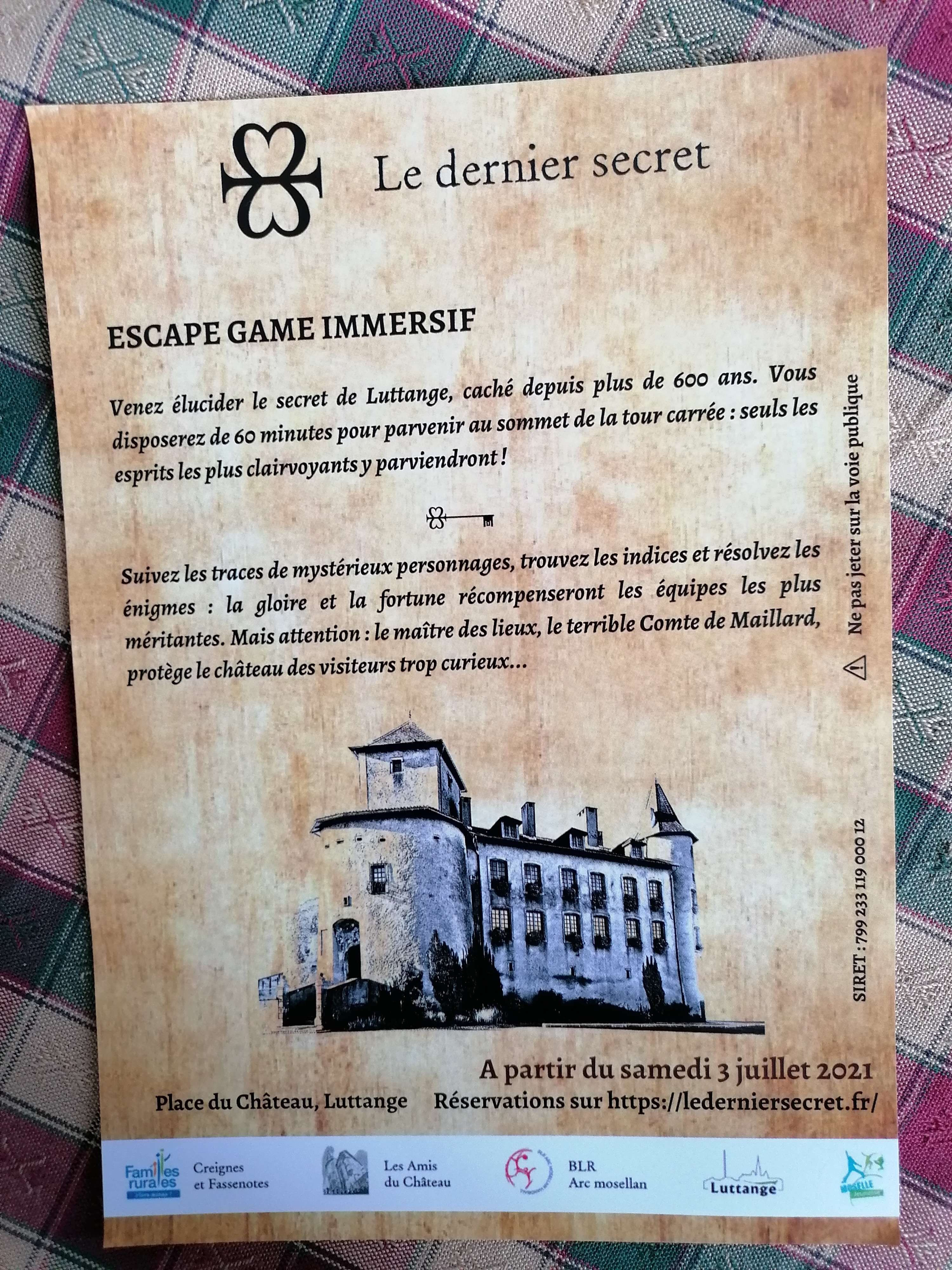 Super expérience au Château de Luttange ! Un escape game ambitieux avec un game mastering au top ! Lancez vous mais échauffez vos méninges avant :) merci à l’équipe qui a fait un sacré travail sur ce jeu